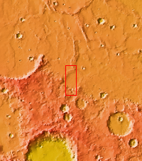 The THEMIS camera contains 5 filters. The data from different filters can be combined in multiple ways to create a false color image. These false color images may reveal subtle variations of the surface not easily identified in a single band image. Today's false color image shows part of Syrtis Major Planum, including several wind streaks.