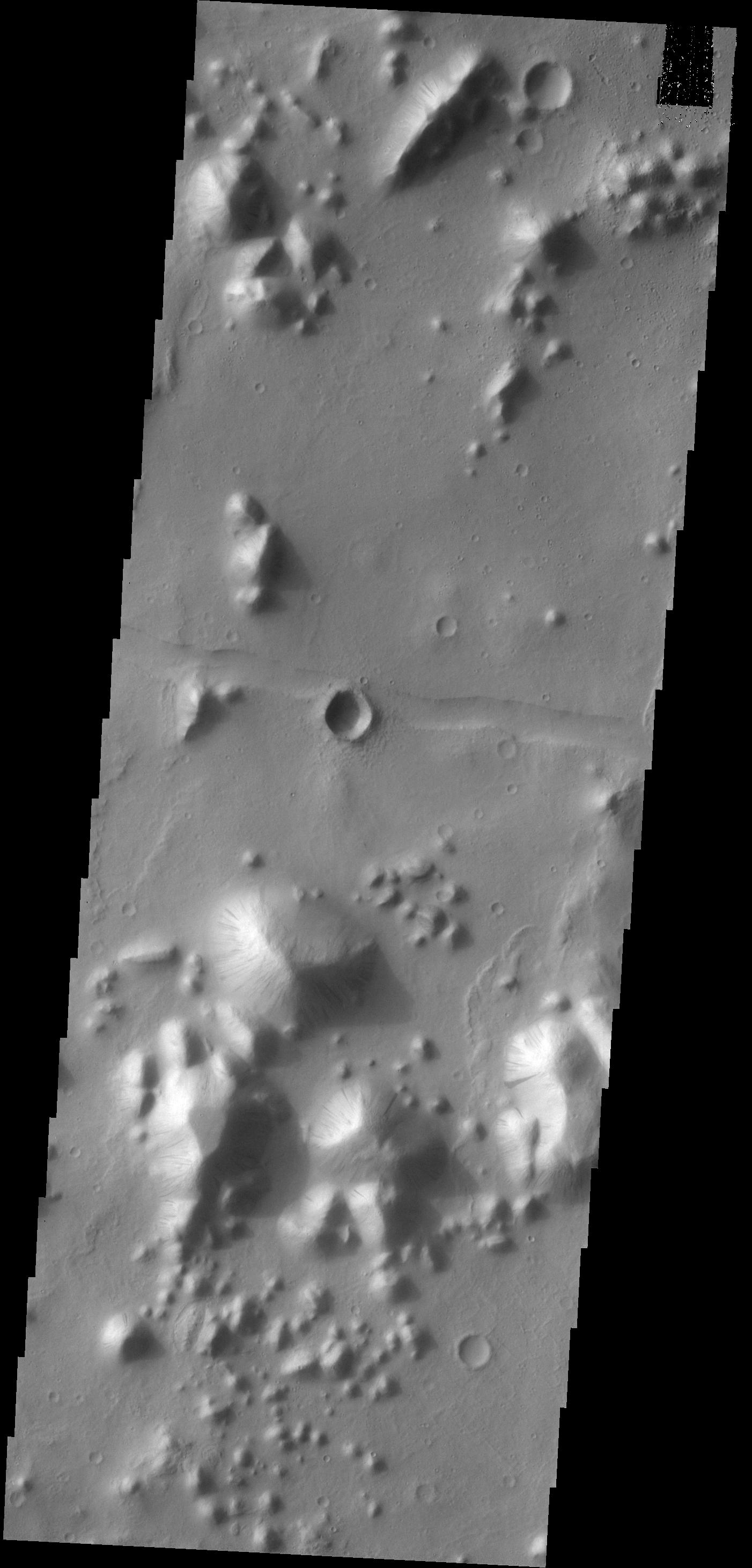 Dark slope streaks mark many of the hills in this VIS image. This region of hills is called Tartarus Colles. The term colles means small hills or knobs.