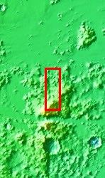 Tartarus Montes is a group of low hills located between Orcus Patera and the Elysium volcanic region. Many fractures, like the one seen in this VIS image, cut the Tartarus Montes running radial to the Elysium volcanic center.