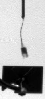 This series of images show Phoenix's telltale instrument waving in the Martian wind. Documenting the telltale's movement helps mission scientists and engineers determine what the wind is like on Mars.