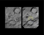 The left-hand image is a composite made from images obtained by Deep Impact in July 2005. The right-hand image shows arrows identifying the rim of the crater caused by the impactor. The crater is estimated to be 150 meters (500 feet) in diameter. This image also shows a brighter mound in the center of the crater likely created when material from the impact fell back into the crater. An unannotated version of this image is can be seen at PIA13873.