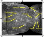 On March 3, 2010, the International Astronomical Union (IAU) approved names for 10 impact craters on Mercury. The newly named craters are labeled here on a portion of a global mosaic of Mercury's surface (see PIA12397) and include: