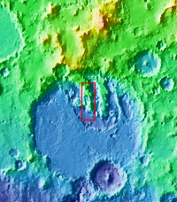 The THEMIS camera contains 5 filters. The data from different filters can be combined in multiple ways to create a false color image. These false color images may reveal subtle variations of the surface not easily identified in a single band image. Today's false color image shows the northern part of Terby Crater. This image shows the layered deposits that fill the crater.
