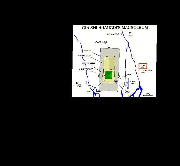 The terracotta army, was buried near the mausoleum of Qin Shi Huang, the first emperor of China, in about 220 BCE. The 8,000 figures, chariots and horses were discovered by farmers in 1974 outside of Xian. The unexcavated pyramidal tomb is about 300 by 300 m, and over 75 m high. The image was acquired July 25, 2023, covers an area of 8.5 by 9.2 km, and is located at 34.4 degrees north, 109.2 degrees east. Map (Figure 1) from: https://commons.wikimedia.org/w/index.php?curid=139439886