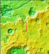 The northern margins of Arabia Terra and Terra Sabaea contain many unnamed channels. This channel is located in Terra Sabaea. The channel flow is toward the top of the image. This channel has been covered by craters at the top of the image, showing that the channel flow occurred prior to the impacts that created the craters.
