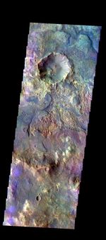 The THEMIS camera contains 5 filters. The data from different filters can be combined in multiple ways to create a false color image. These false color images may reveal subtle variations of the surface not easily identified in a single band image. Today's false color image shows some of the plains of Sabaea Terra.