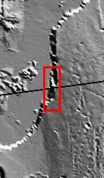 The landslide in the VIS image occurs in the Tharsis region of Mars, just north of Hebes Chasma. The volcanic flows forming the lower surface in the image have a platy texture. The landslide is younger than the volcanic flow, as the landslide sits on top of the flow surface.