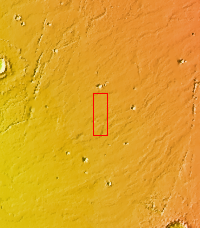 This VIS image shows are region of lava covered plains east of Olympus Mons. Winds are common in the area and have created windstreaks downwind of craters in the region and on the lava flows.