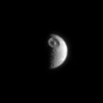 The image was taken in visible light with the Cassini spacecraft narrow angle camera on July 3, 2004, from a distance of 1.7 million kilometers (1 million miles) from Mimas and at a Sun-Mimas-spacecraft, or phase angle of about 102 degrees. The image scale is 10 kilometers (6 miles) per pixel. The image has been magnified by a factor of two to aid visibility.