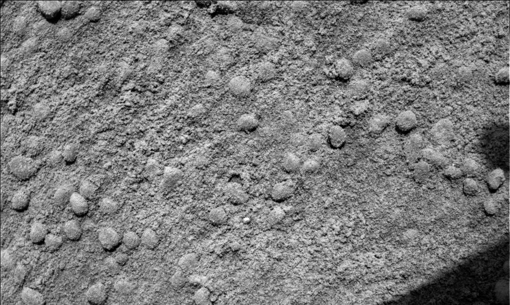 This microscopic image taken by the Mars Exploration Rover Spirit shows the troughs between the waves of windblown soil that characterize the surface of Gusev Crater, Mars. The fine-grained soil in the troughs, combined with the coarse grains observed in a similar microscopic image taken of the waves' crests, indicate that the waves are geologic features known as ripples, and not dunes. Dunes contain a more uniform distribution of material. This information helps scientists better understand the winds that shape the landscape of Mars. The image was taken on the 41st martian day, or sol, of the rover's mission by its microscopic imager. The observed area is 3 centimeters (1.2 inches) across.