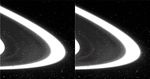 A new found ring of material, S/2004 1 R, in the orbit of Saturn's moon Atlas has been seen in this view of the region between the edge of Saturn's A ring and the F ring.
