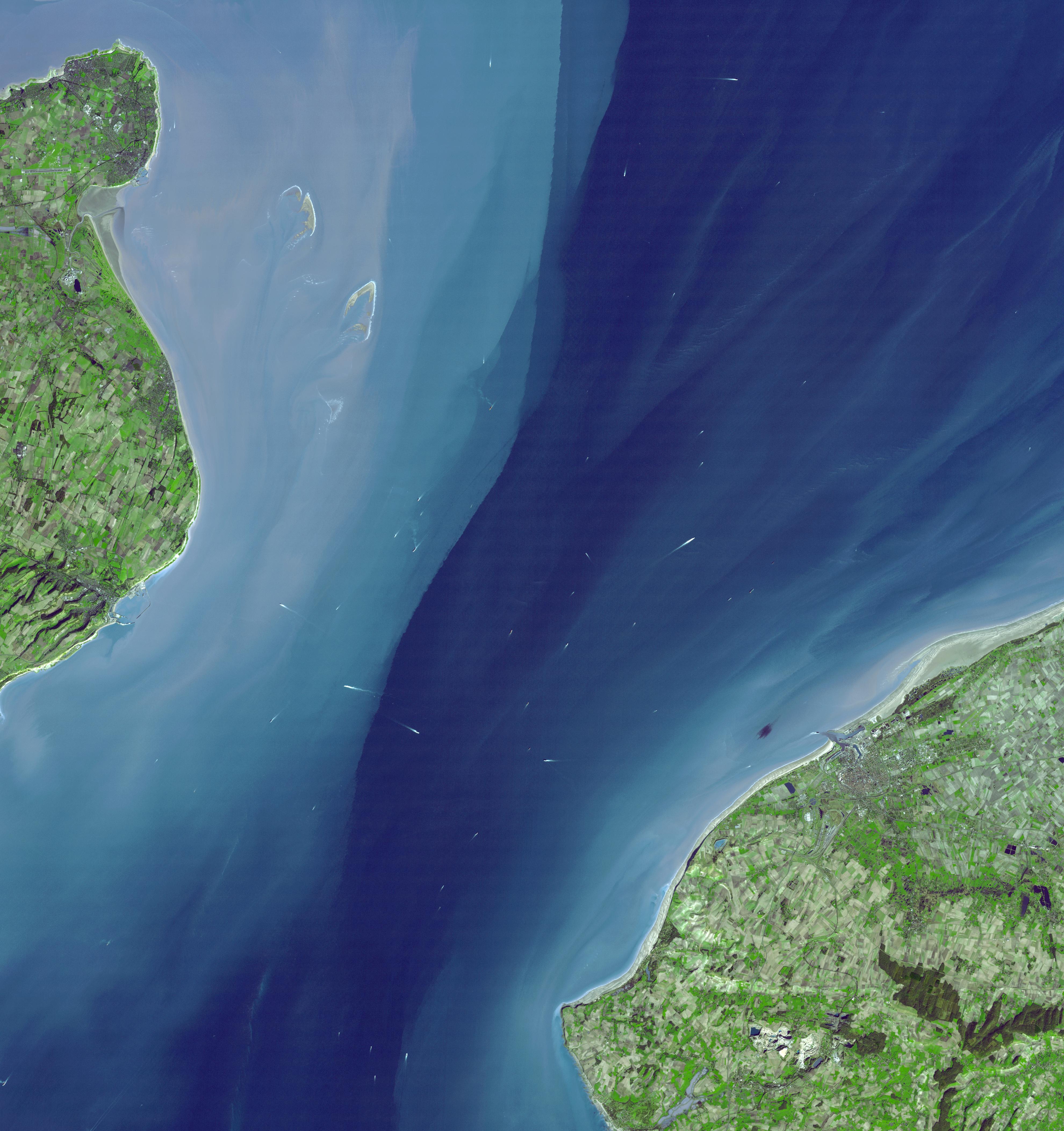 The Channel Tunnel is a 50.5 km-long rail tunnel beneath the English Channel at the Straits of Dover. It connects Dover, Kent in England with Calais, northern France. This image was acquired by NASA's Terra spacecraft.
