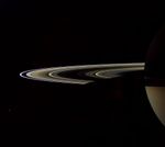 Cassini was about 3 degrees above the ringplane when this image was obtained on Sept. 6, 2006. Images taken using red, green and blue spectral filters were combined to create this natural color view. The images were taken using the Cassini spacecraft wide-angle camera at a distance of approximately 1.8 million kilometers (1.1 million miles) from Saturn and at a Sun-Saturn-spacecraft, or phase, angle of 154 degrees. Image scale is 106 kilometers (66 miles) per pixel.