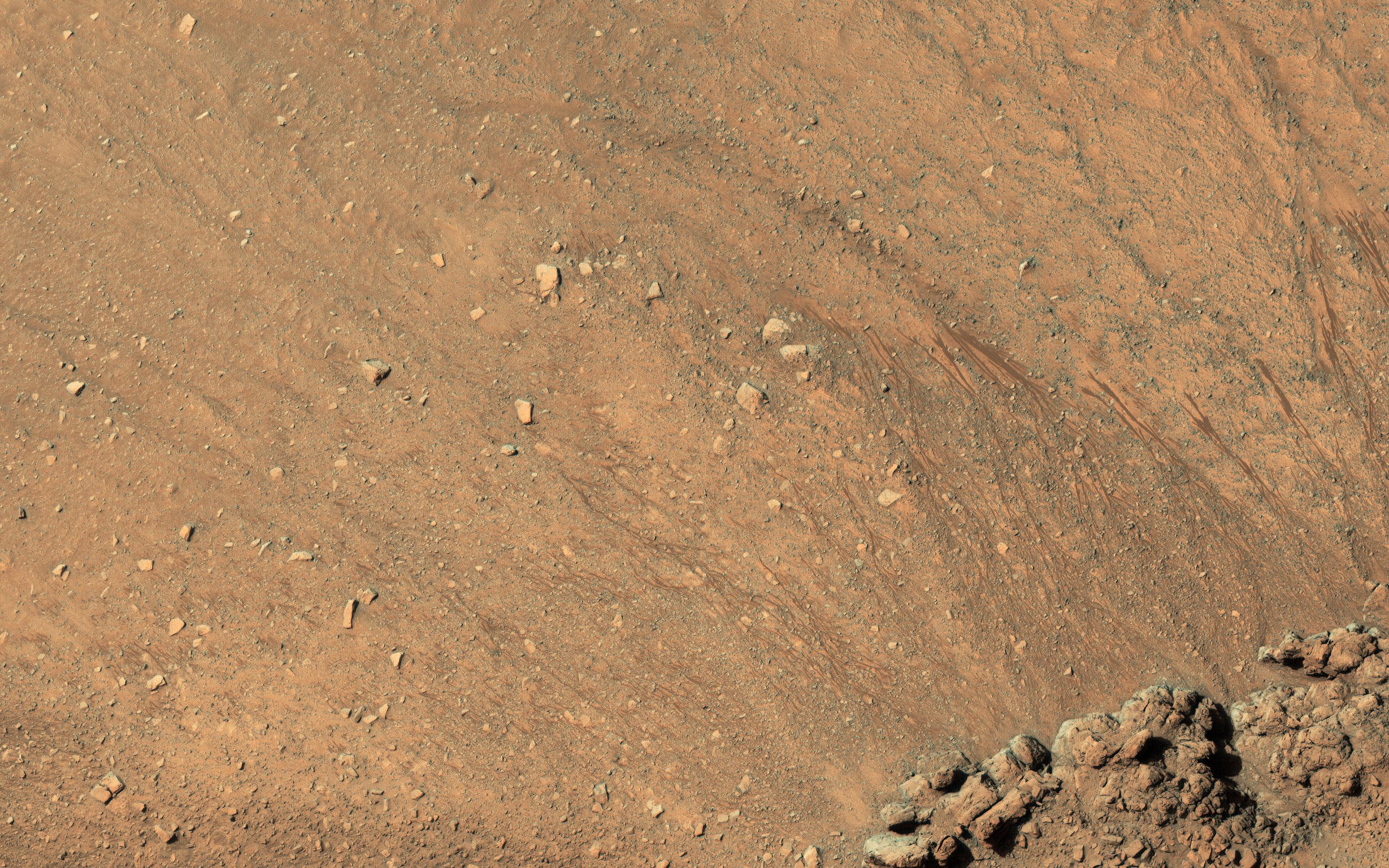 Another closeup shows new RSL forming during the summer just after the recent global dust storm. How these features form is still under investigation. Additional changes documented here and at other locations as a result of the dust storm may provide some insight into their formation.
