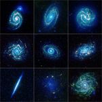 A new, colorful collection of galaxy specimens has been released by NASA's Wide-field Infrared Survey Explorer, or WISE, mission. It showcases galaxies of several types, from elegant grand design spirals to more patchy flocculent spirals. Some of the galaxies have roundish centers, while others have elongated central bars. The orientation of the galaxies varies as well, with some seeming to peer straight back at us in the face-on configuration while others point to the side, appearing edge-on.