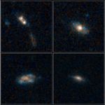 The galaxies existed roughly 8 billion to 12 billion years ago, during a peak epoch of black-hole growth. The galaxies' masses are comparable to our Milky Way's. The blue patches are star-forming regions. The brown areas are either dust or old stars.