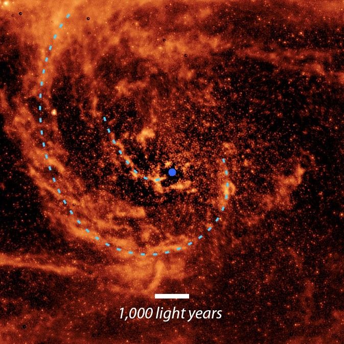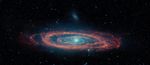 Figure A shows only the dust, making it easier to see a large dust ring around the Andromeda galaxy's center. While both the Milky Way and Andromeda are spiral galaxies, the Milky Way's dust structure is slightly different, with distinct spiral arms stretching out from the galaxy's center. The images also revealed a secondary hole in one portion of Andromeda ring where a dwarf galaxy passed through.