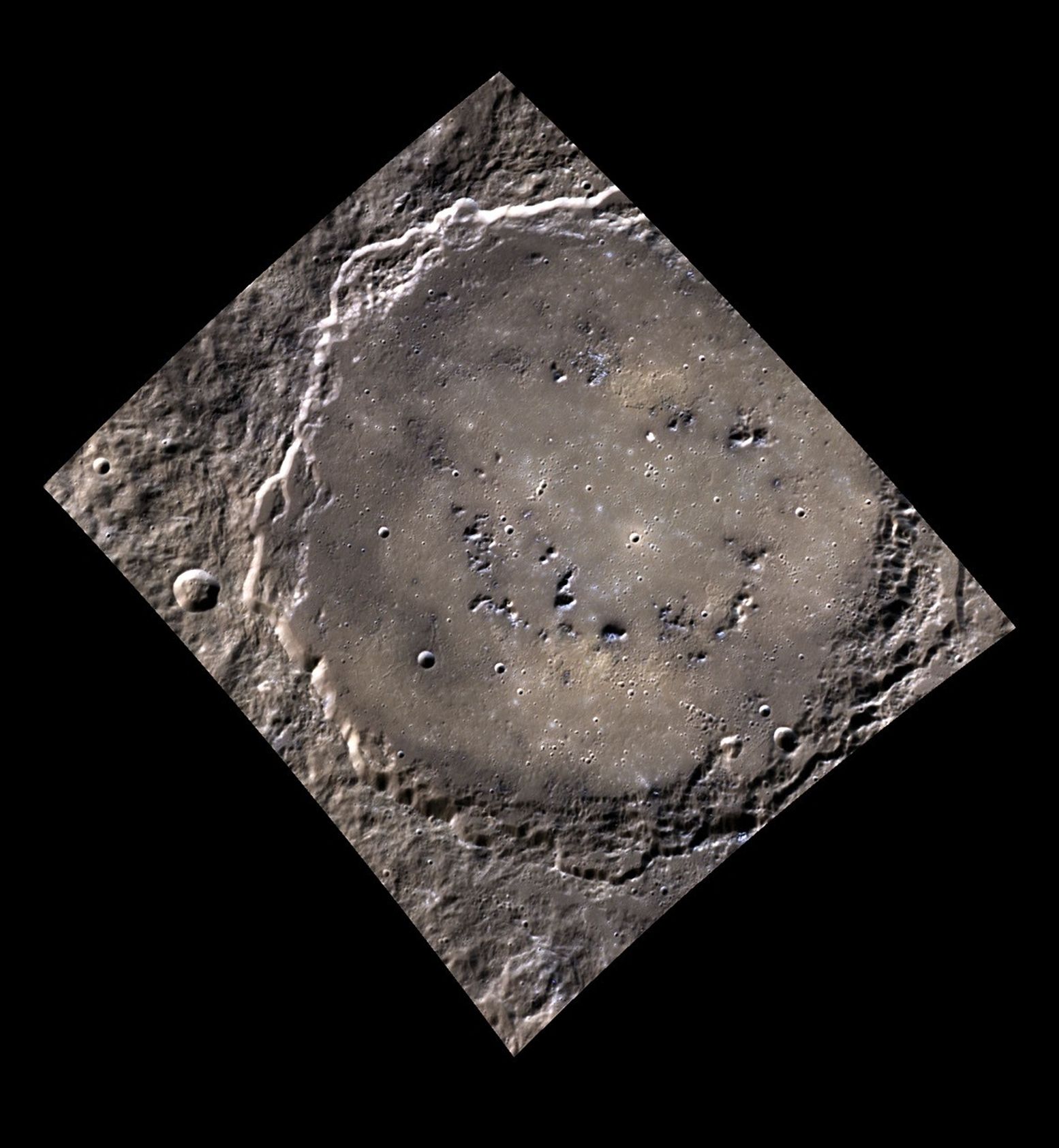 This color image shows Rustaveli, a newly named basin located in the Northern hemisphere of the planet. The basin has a smooth, filled floor with little weathering and a peak-ring structure. Shota Rustaveli was a Georgian poet who lived from 1172-1216. He is well known for writing the Georgian national epic poem, "The Knight in the Panther's Skin". He is also the namesake of the coveted Shota Rustaveli State Prize, the highest honor a Georgian artist or writer can achieve.
