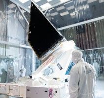 The shiny and black surfaces of the enclosure optimize the reflection and radiation properties of the structure. The telescope, which has an aperture of nearly 20 inches (50 centimeters), features detectors sensitive to two infrared wavelengths in which near-Earth objects re-radiate solar heat. The instrument enclosure is designed to ensure heat produced by the telescope during operations doesn't interfere with its observations.