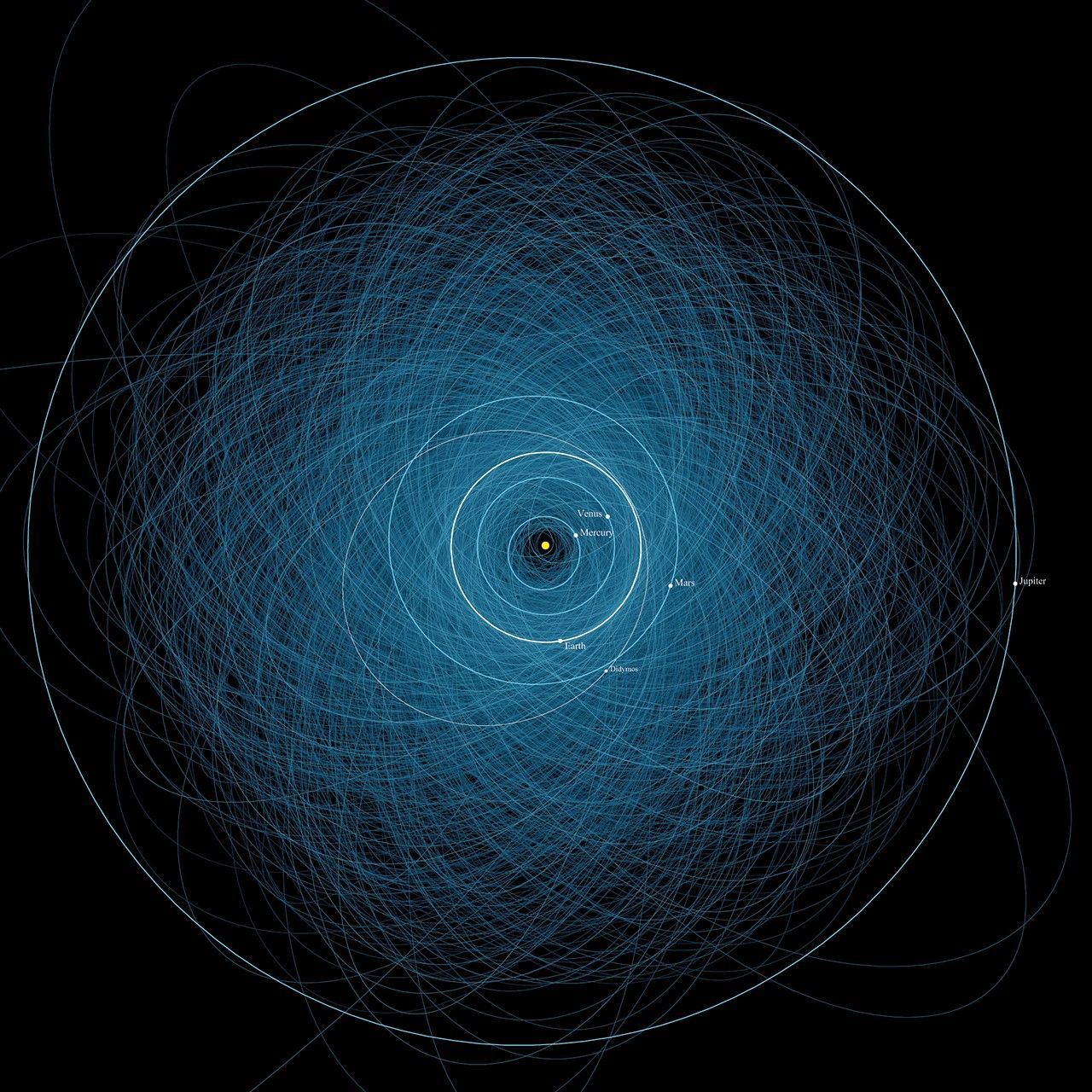 This orbital diagram was produced by the Center for Near Earth Object Studies (CNEOS), which is managed by NASA's Jet Propulsion Laboratory in Southern California. CNEOS characterizes every known near-Earth asteroid (NEA) orbit to improve long-term impact hazard assessments in support of NASA's Planetary Defense Coordination Office (PDCO).