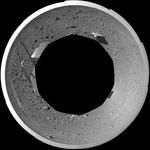 This polar-projection view was created from navigation camera images that NASA's Mars Exploration Rover Spirit acquired on sol 127 (May 12, 2004). Spirit is sitting at site 48. The tracks show the path the rover has traveled so far on its way to the base of the "Columbia Hills." In this image, the hills can be seen silhouetted against the horizon on the far left side. Spirit will reach the base of the hills by sol 160.