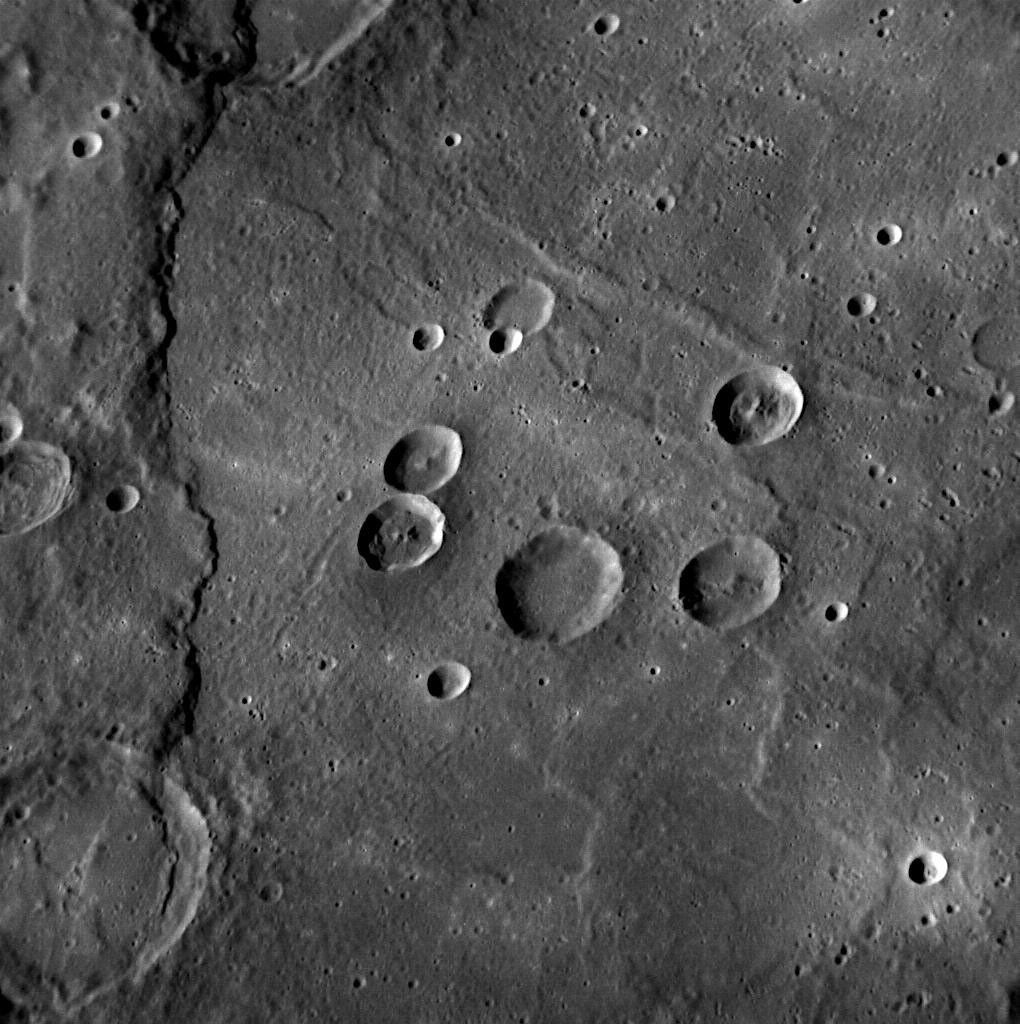 The long scarp trending vertically on the left-side of this image is located in the interior of the large 715-kilometer diameter Rembrandt impact basin. The interior of Rembrandt hosts not only this compressional scarp but also a set of radial extensional troughs. View these links to see Rembrandt in color or in 3D.