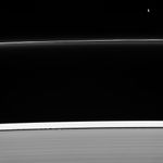 Two masters of their craft are caught at work shaping Saturn's rings. Pandora (upper right) sculpts the F ring, as does nearby Prometheus (not seen in this image). Meanwhile, Daphnis is busy holding open the Keeler gap (bottom center), its presence revealed here by the waves it raises on the gap's edge. The faint moon is located where the inner and outer waves appear to meet. Also captured in this image, shining through the F ring above the image center, is a single star.