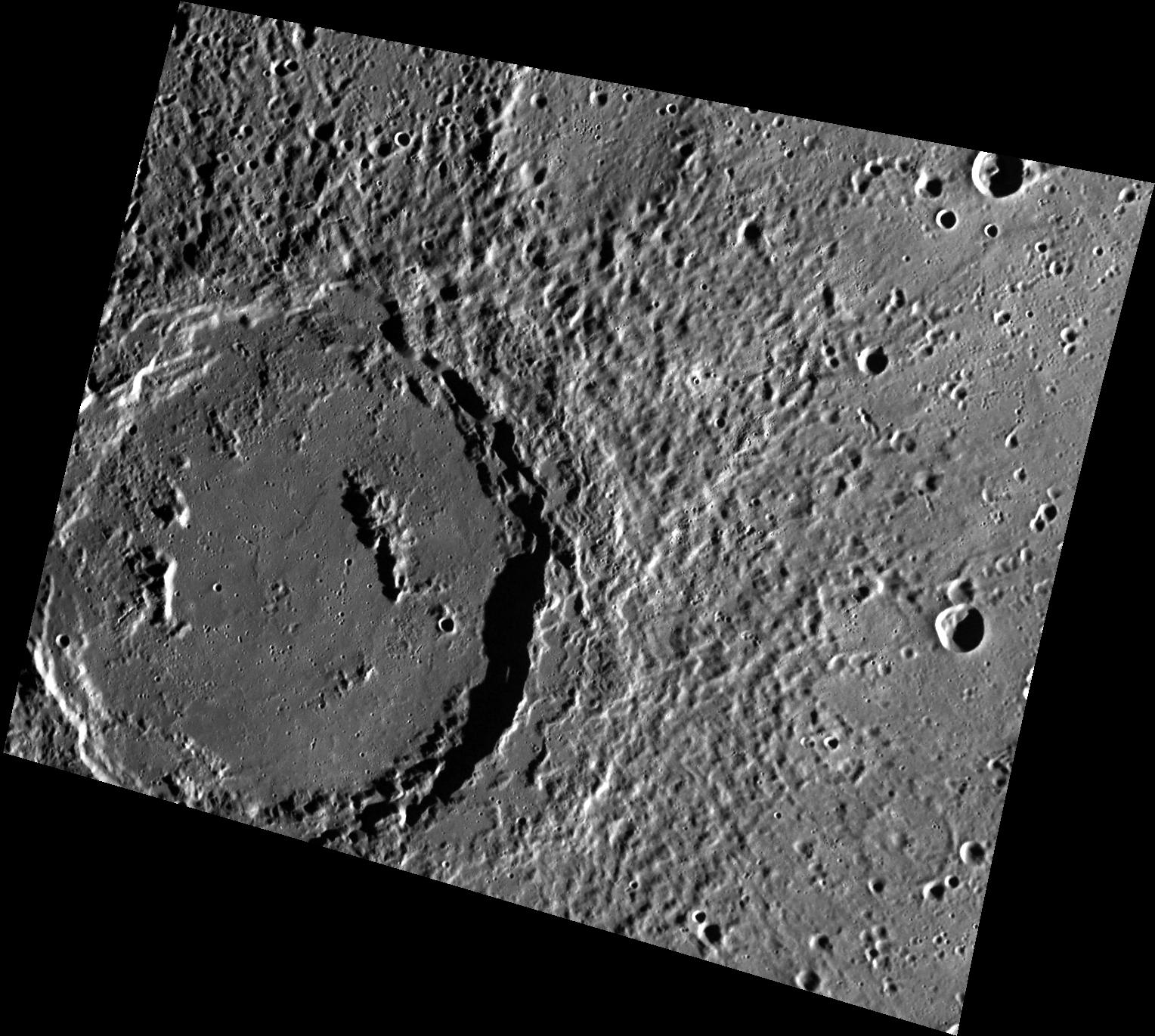 This image was acquired as part of MDIS's high-resolution surface morphology base map. The surface morphology base map covers more than 99% of Mercury's surface with an average resolution of 200 meters/pixel. Images acquired for the surface morphology base map typically are obtained at off-vertical Sun angles (i.e., high incidence angles) and have visible shadows so as to reveal clearly the topographic form of geologic features.