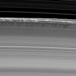 Cassini scientists believe that this is one prominent region at the outer edge of the B ring where large bodies, or moonlets, up to a kilometer or more in size, are found. It is possible that these bodies significantly affect the ring material streaming past them and force the particles upward, in a "splashing" manner.