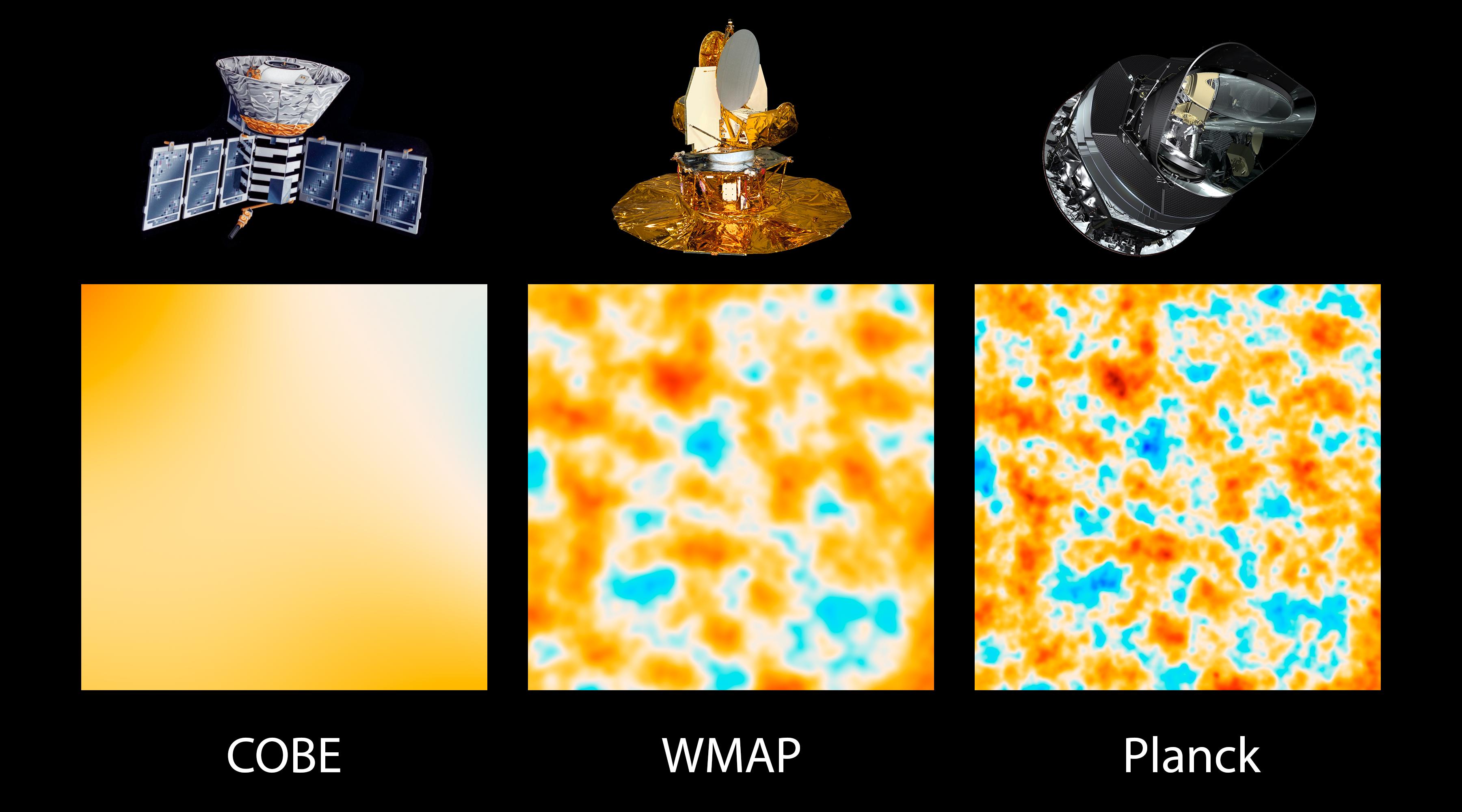 This graphic illustrates the evolution of satellites designed to measure ancient light leftover from the big bang that created our universe 13.8 billion years ago. Called the cosmic microwave background, this light reveals secrets of the universe's origins, fate, ingredients and more.