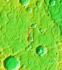 Do you see what I see? These three side-by-side craters increase in size toward the bottom of the image. Looks like a snowman, only his eyes are missing.