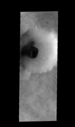Note: this THEMIS visual image has not been radiometrically nor geometrically calibrated for this preliminary release. An empirical correction has been performed to remove instrumental effects. A linear shift has been applied in the cross-track and down-track direction to approximate spacecraft and planetary motion. Fully calibrated and geometrically projected images will be released through the Planetary Data System in accordance with Project policies at a later time.