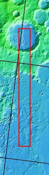 Tilt your head to the right to "see" the frowning ghost with prominent eyes. This nighttime infrared image shows part of the region of outwash where Mawrth Vallis empties into Chryse Planitia. The dark regions are colder than the bright regions. At night rock retains heat better than dust, so the dark "eyes" are small craters with dust on the floors surrounding a rocky central peak or pit.
