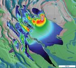 A newly found, buried deposit of frozen carbon dioxide -- dry ice -- near the south pole of Mars contains about 30 times more carbon dioxide than previously estimated to be frozen near the pole. This map color-codes thickness estimates of the deposit derived and extrapolated from observations by the Shallow Subsurface Radar (SHARAD) instrument on NASA's Mars Reconnaissance Orbiter. The orbiter does not pass directly over the pole, and the thickness estimates for that area (with smoother transitions from color to color) are extrapolations.