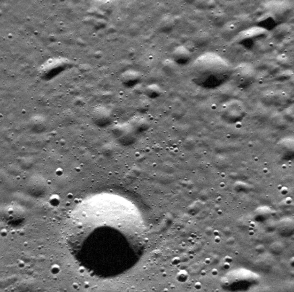 This view of Mercury's surface illustrates the process of erosion on the innermost planet. At present on Earth, the dominant agents that work to wear down the landscape are flowing water, moving ice (glaciers), and blowing wind. Mercury lacks these agents, and its atmosphere is far too thin to offer protection from cosmic impacts. As a result, Mercury's surface is exposed to impact cratering by objects ranging from micrometer-sized dust motes to multi-kilometer asteroids and comets. Here we see craters in various stages of degradation. Some craters have been worn down to mere dimples, while other, younger, impacts still retain their original shapes. Craters that have a non-circular shape or that occur in clusters are probably secondary craters formed when material ejected from primary impacts falls back to the surface.