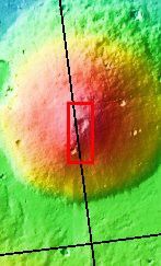 This image shows the summit of Hecates Tholus. The summit caldera is located in the top of the image.