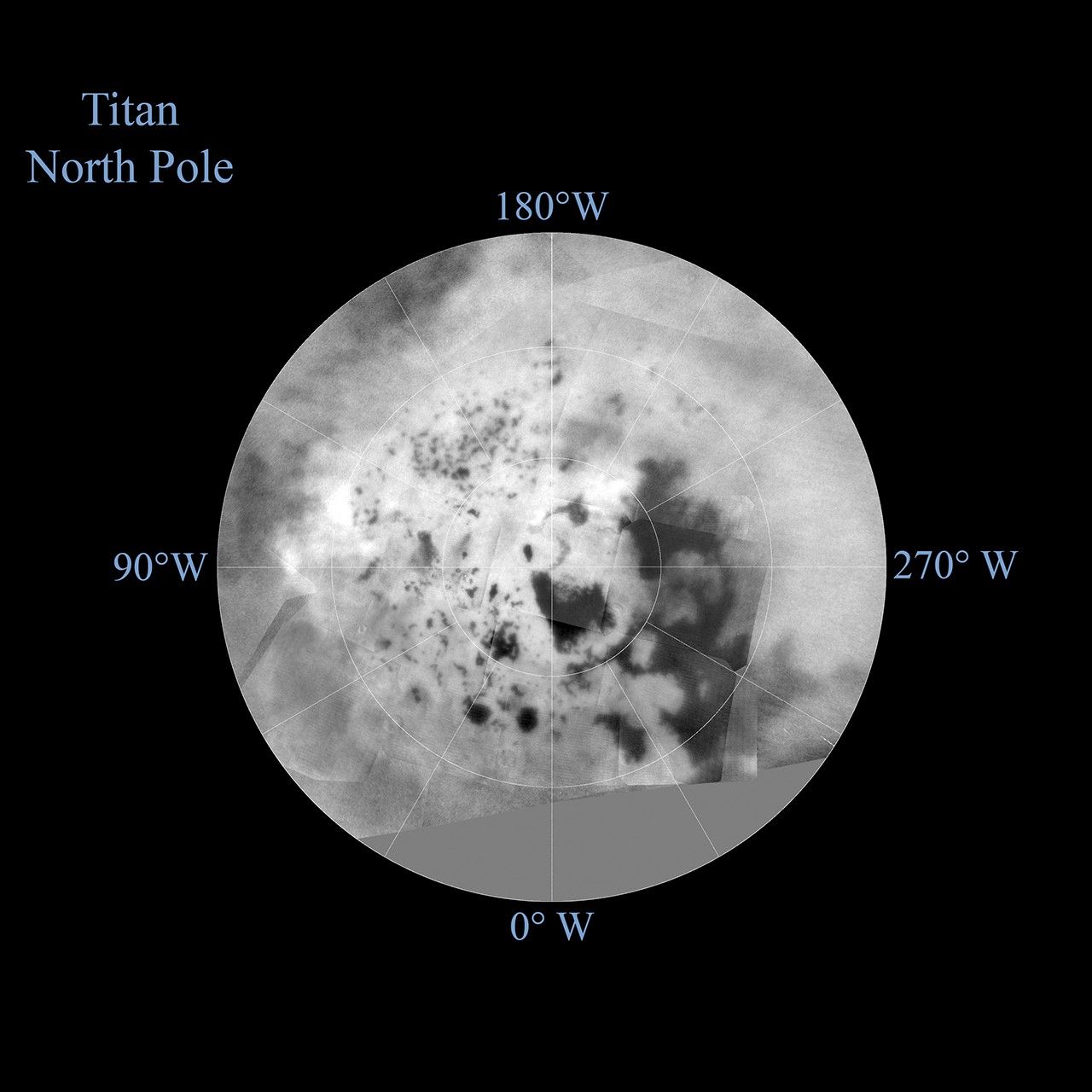 Titan's north pole was not well illuminated early in Cassini's mission, because it was winter in the northern hemisphere when the spacecraft arrived at Saturn. Cassini has been better able to observe northern latitudes in more recent years due to seasonal changes in solar illumination. Compared to the previous version of Cassini's north polar map (see PIA11146), this map provides much more detail and fills in a large area of missing data. The imaging data in these maps complement Cassini synthetic aperture radar (SAR) mapping of Titan's north pole (see PIA17655).