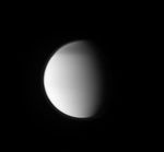 The image was taken with the Cassini spacecraft narrow-angle camera on Aug. 13, 2009 using a spectral filter sensitive to wavelengths of ultraviolet light centered at 338 nanometers. The view was acquired at a distance of approximately 2.2 million kilometers (1.4 million miles) from Titan and at a Sun-Titan-spacecraft, or phase, angle of 61 degrees. Image scale is 26 kilometers (16 miles) per pixel.