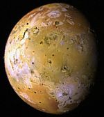 The images used to create this color composite of Io were acquired by Galileo during its ninth orbit (C9) of Jupiter and are part of a sequence of images designed to map the topography or relief on Io and to monitor changes in the surface color due to volcanic activity. Obtaining images at low illumination angles is like taking a picture from a high altitude around sunrise or sunset. Such lighting conditions emphasize the topography of the volcanic satellite. Several mountains up to a few miles high can be seen in this view, especially near the upper right. Some of these mountains appear to be tilted crustal blocks. Most of the dark spots correspond to active volcanic centers.