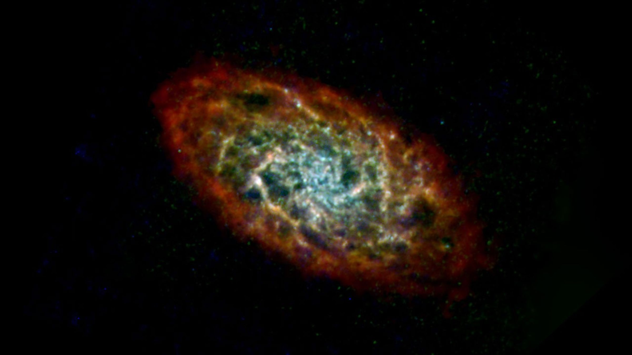 This image of the Triangulum galaxy, or M33, includes data from the ESA (European Space Agency) Herschel mission, supplemented with data from ESA's retired Planck observatory and two retired NASA missions: the Infrared Astronomical Satellite (IRAS) and Cosmic Background Explorer (COBE).