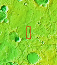 The triple tails of windstreaks behind these small craters in Arabia Terra indicate multiple wind directions in the area.