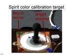 This image taken on Mars by the panoramic camera on the Mars Exploration Rover Spirit shows the rover's color calibration target, also known as the MarsDial. The target's mirror and the shadows cast on it by the Sun help scientists determine the degree to which dusty martian skies alter the panoramic camera's perception of color. By adjusting for this effect, Mars can be seen in all its true colors.
