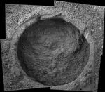 This image taken by the Mars Exploration Rover Opportunity shows a target dubbed "Tuktoyuktuk" on a rock called "Inuvik" in "Endurance Crater." Opportunity dug a hole into the target with its rock abrasion tool, then captured this picture with its microscopic imager on sol 188 (Aug. 4, 2004). The image mosaic is about 6 centimeters (2.4 inches) across.