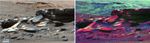 The image on the left is an enhanced-color image taken by the Mastcam-Z imager aboard NASA's Perseverance rover of a rocky outcrop in the "Séítah" geologic unit of Jezero Crater. In the background, a portion of Jezero's ancient river delta can be made out. The image on the right is a mineral map created using Mastcam-Z's multispectral-imaging capability. Olivine is shown in red. Calcium-poor pyroxene is in green. Calcium-rich pyroxene in blue. Séítah rocks contain abundant olivine, and the regolith, or broken rock and soil, is diverse.