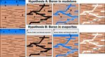 This graphic portrays two hypotheses about how the element boron ended up in calcium sulfate veins found within mudstone layers of the Murray formation on Mars' lower Mount Sharp.