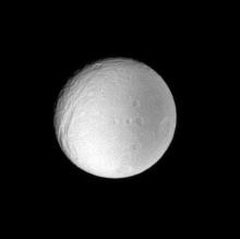 The image was taken with the Cassini spacecraft narrow-angle camera on Oct. 26, 2007 using a spectral filter sensitive to wavelengths of ultraviolet light centered at 338 nanometers. The view was obtained at a distance of approximately 1.6 million kilometers (972,000 miles) from Tethys and at a Sun-Tethys-spacecraft, or phase, angle of 16 degrees. Image scale is 9 kilometers (6 miles) per pixel.