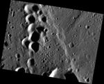 Today's image reveals several secondary craters. Crater chains are produced when ejecta from a primary impact re-impacts Mercury's surface, forming chains of small, often overlapping, secondary craters. This image also features a scarp, running NE-SW along the frame.