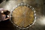 Shannon Zirbel, a Ph.D. student in mechanical engineering at Brigham Young University, Provo, Utah, unfolds a solar panel array that was designed using the principles of origami. She worked on this project with Brian Trease at NASA's Jet Propulsion Laboratory, Pasadena, California.