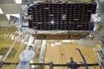 Inside an environmental enclosure at Vandenberg Air Force Base's processing facility in California, solar panels line the sides of NASA's Nuclear Spectroscopic Telescope Array, or NuSTAR, which was just joined to the Orbital Sciences Pegasus XL rocket. The uniting of the spacecraft with the rocket is a major milestone in prelaunch preparations.
