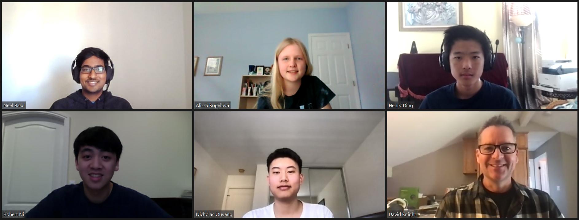 For the fourth consecutive year, Irvine's University High School won the Southern California regional round of the National Science Bowl, hosted by JPL. The team, including coach David Knight (lower right), paused for a group shot after their victory on March 20, 2021.